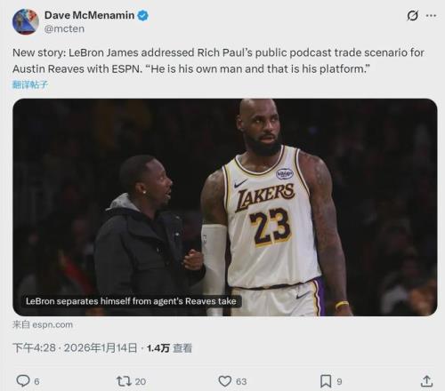 里奇-保罗第一次谈及湖人阵容时,没有具体点名某个球员,当时湖人管理层并未放在心上。如今他公开提到用里夫斯去换3J,显然不利于湖人更衣室稳定。里奇-保罗不仅是詹姆斯的经纪人,他俩也是20多年的挚友和商业搭档。